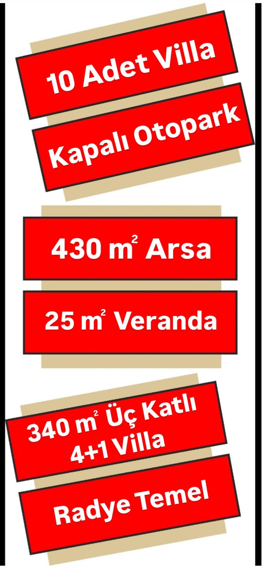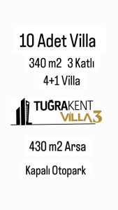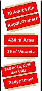 10 Adet Villa, 340m2, 3 Katlı, 4+1 Villa, 430m2 Arsa, Kapalı Otopark
